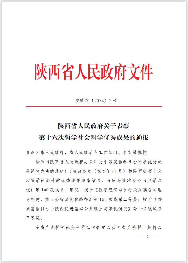 陕西省哲学社会科学优秀成果奖由陕西省人民政府发起设立,每两年评选一次,代表了我省哲学社会科学研究领域的最高荣誉和最高水平。旨在鼓励陕西省广大哲学社会科学工作者积极进行科学研究,繁荣发展哲学社会科学事业,推动陕西社科强省建设,同时也是教育部学科评估重点指标之一。本次全省共评选出一等奖100项(论文52项),二等奖152项,以及三等奖162项。