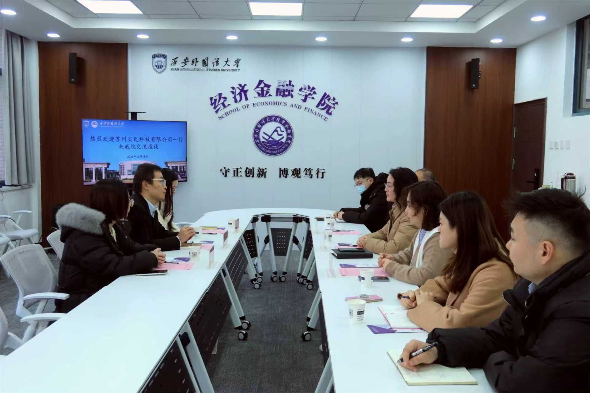 12月18日,KU体育 与苏州贝瓦科技有限公司在教学楼E303会议室召开校企交流座谈会。苏州贝瓦科技有限公司市场总监杨洁、人事专员潘洁、海外媒体运营刘鑫月与KU体育 党委书记邓雯、党委副书记尚瑞,KU体育 教授党军,2022级辅导员王瑾、依斯坎达尔及研究生辅导员张亮参加座谈会。