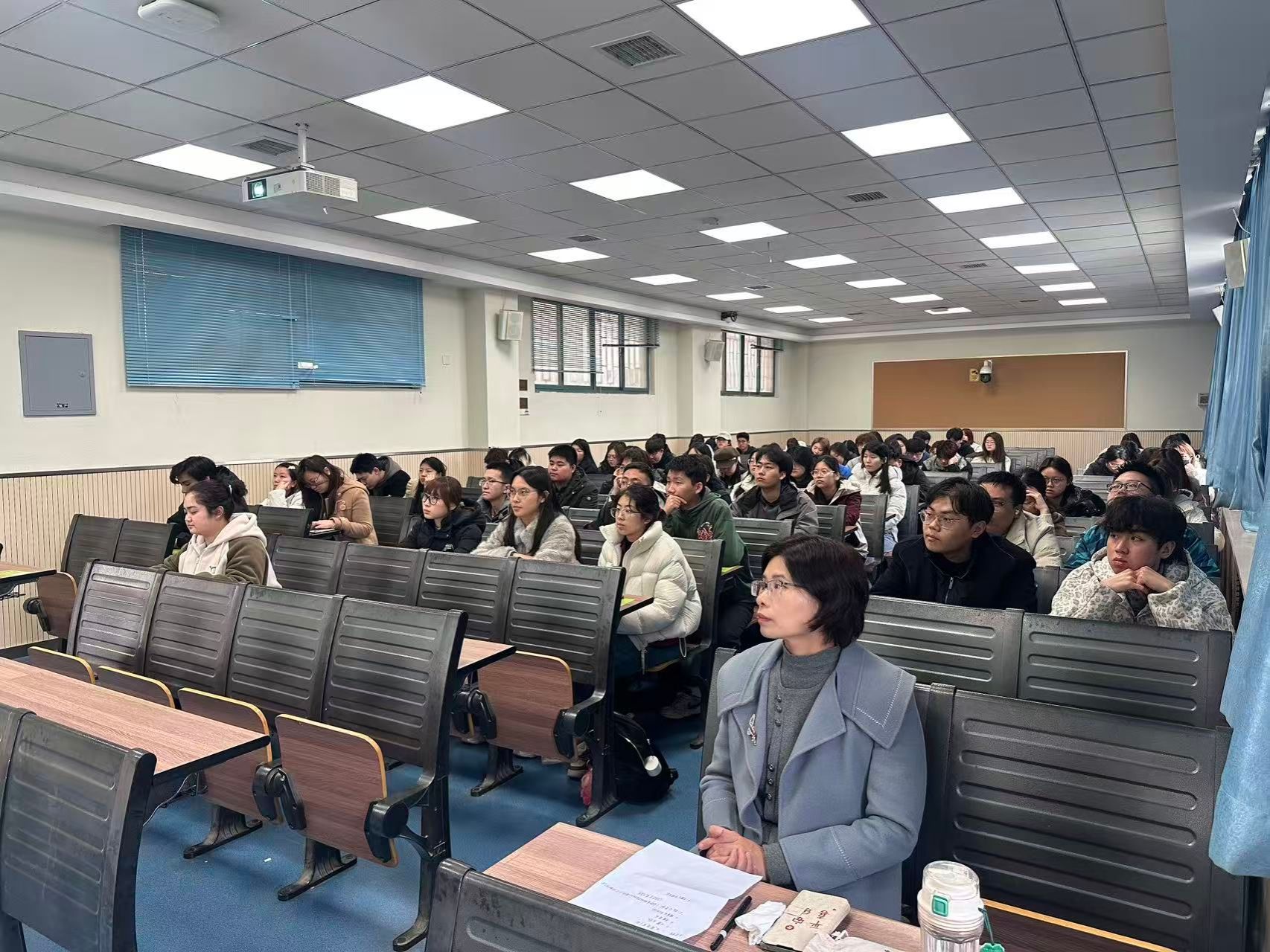 针对参赛流程,崔文博先生详细说明了大赛的组织机构、参赛资格、报名规则及赛程安排。他对初赛及决赛各阶段的考核重点进行了系统梳理,并明确了关键时间节点,为参赛团队制定备赛计划提供了清晰指引。在激励机制方面,崔文博先生重点介绍了大赛设立的专项支持政策。据悉,本届大赛将为优秀选手提供头部金融机构核心岗位实习推荐机会,并设立CFA考试奖学金及系列专业公开课资源。这一举措旨在通过“以赛促学、以赛促练”,切实帮助学生打通从校园到职场的“最后一公里”。交流互动环节,与会师生就赛事细节、实习匹配机制及CFA资格认证路径等问题与主讲嘉宾进行了深入探讨。现场气氛庄重热烈,问答环节秩序井然,展现了经金学子严谨治学、关注行业发展的良好风貌。