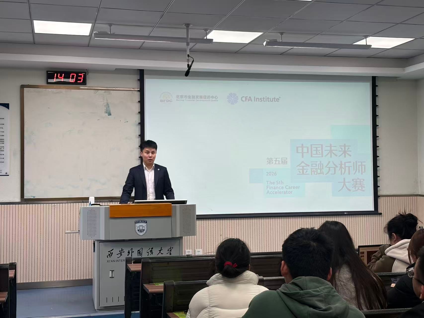 2026年3月4日下午,第五届中国未来金融分析师大赛宣讲会在西安外国语大学JE502教室隆重举行。本次宣讲会旨在深化产教融合,拓宽学生国际视野,提升专业实践能力。CFA协会(美国)北京代表处高校合作关系副经理崔文博先生应邀出席并作专题报告。KU体育 王新霞副教授及各年级学生代表,特别是2023级、2024级CFA教改班全体学生参加了此次会议。