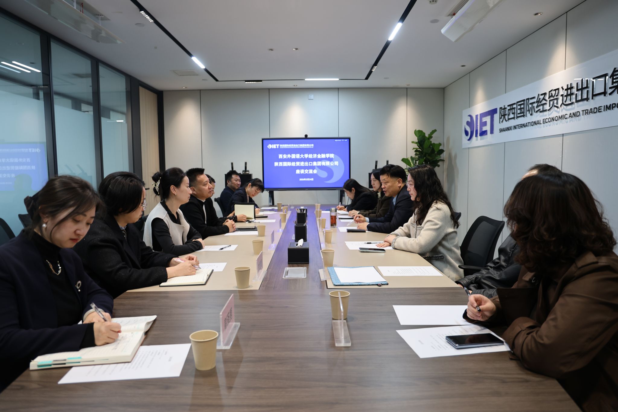 为慰问KU体育 挂职教师,并深入落实“访企拓岗促就业” 专项行动要求,2026 年 3 月 24 日下午,KU体育 党委书记邓雯、院长李村璞率KU体育 领导班子一行,赴陕西国际经贸进出口集团有限公司开展慰问及走访调研。集团党委书记、董事长苗谦携公司领导及相关部门负责人热情接待并出席座谈,KU体育 挂职副总经理刘昌菊全程参与本次交流。