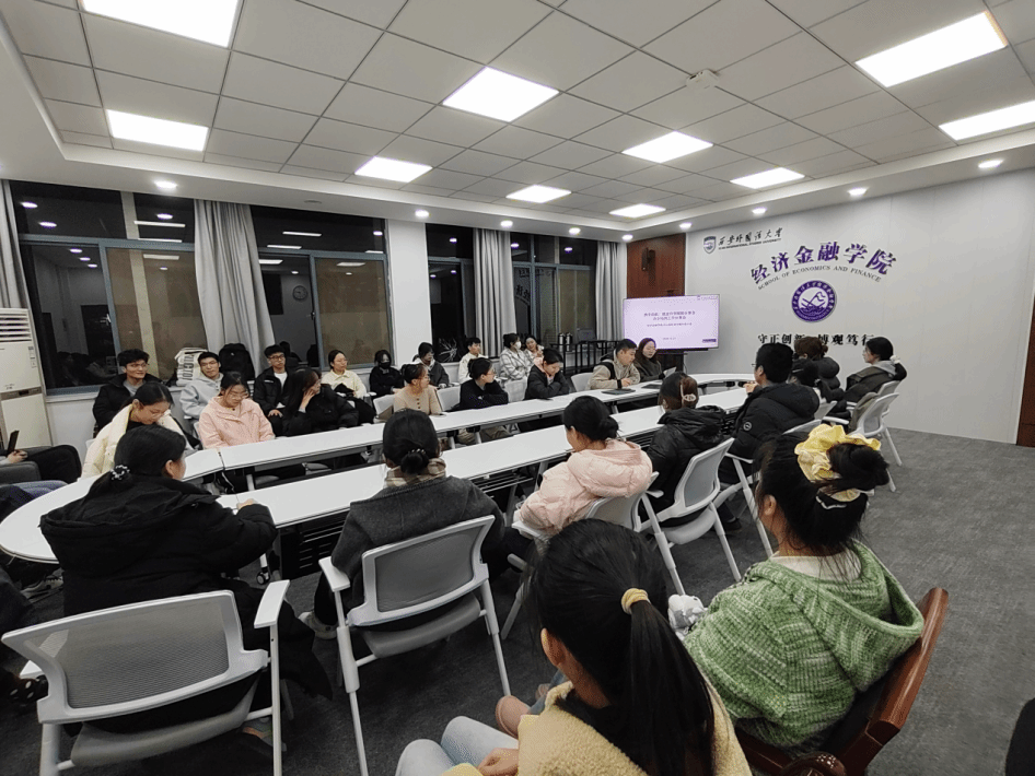 在经验分享环节,2025级应用经济学研究生余欣睿结合自身备考经历,围绕考研冲刺阶段的心态调整与复习策略展开交流,为备战考研的同学提供了实用参考;2022级金融学专业本科生李宇峰则从简历投递、面试实战等方面分享求职心得,鼓励同学们拓宽视野、打破地域区限积极尝试,在行动中实现自我成长。