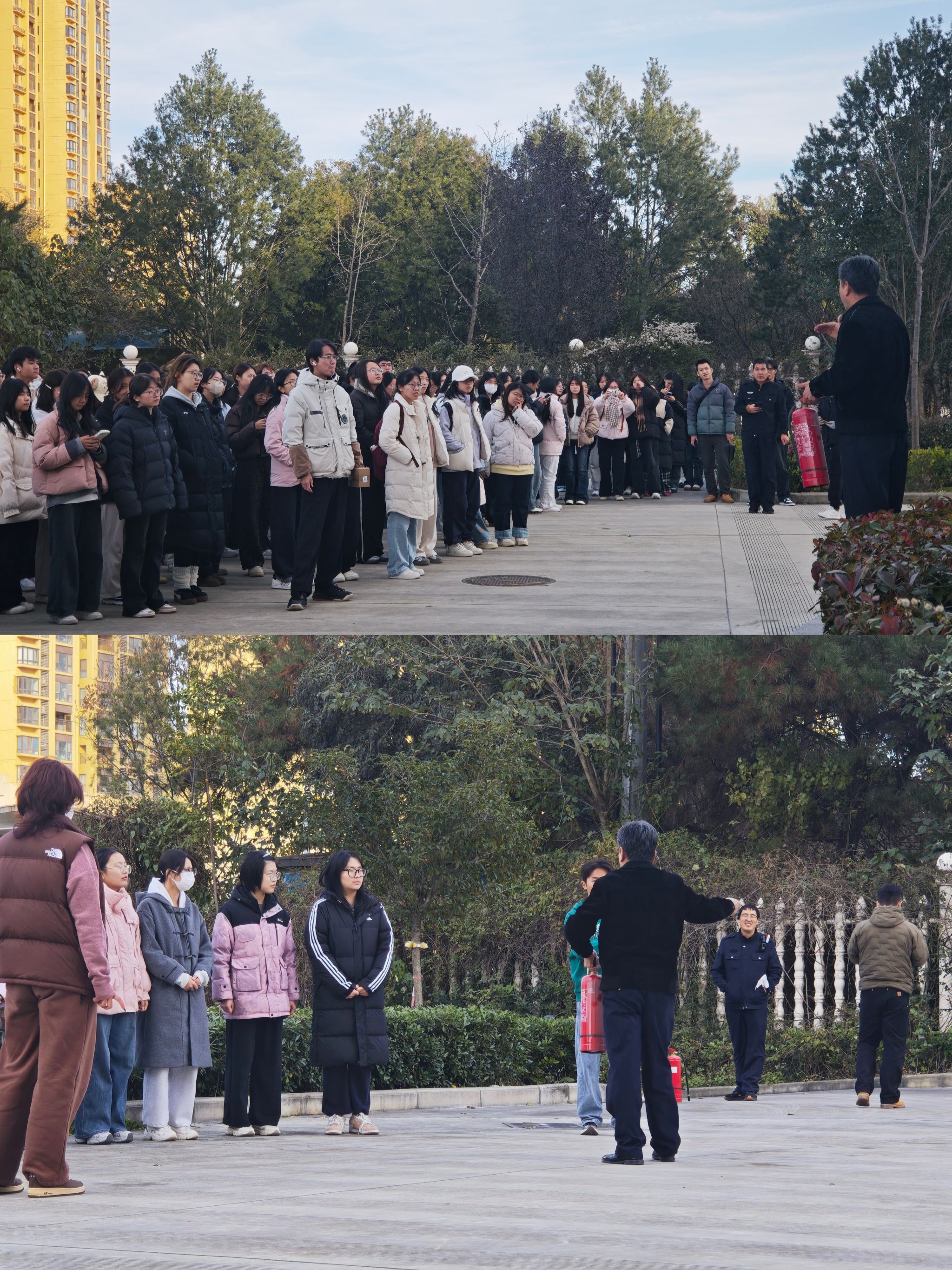 为切实增强新生消防安全意识,提升自救互救能力,2025年11月19日下午2时,KU体育 组织大一新生于启智楼东侧开展消防实战演练活动。校保卫处赵鹏辉老师、张立军老师、KU体育 辅导员陈悦瑶及2025级学生参与此次培训。